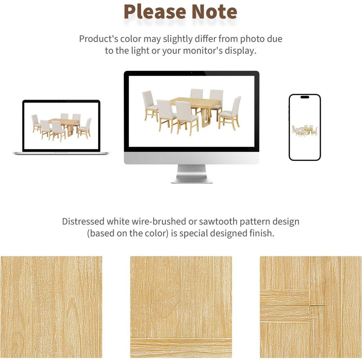 - [Dimension&Warranty]Table:60-72x36x30inch(LxWxH); Chair:18.1x15.7x38.4inch(LxWxH); Seat to ground: 18.9inch; 3 boxes in total which may not come together. Warm notice: Product's color may slightly differ from photo due to the light or your monitor's display. Warm notice: Distressed white wire-brushed or sawtooth pattern design (based on the color) is special designed finish. Please check if you can accept before purchasing. Please feel free to contact us if any issues.