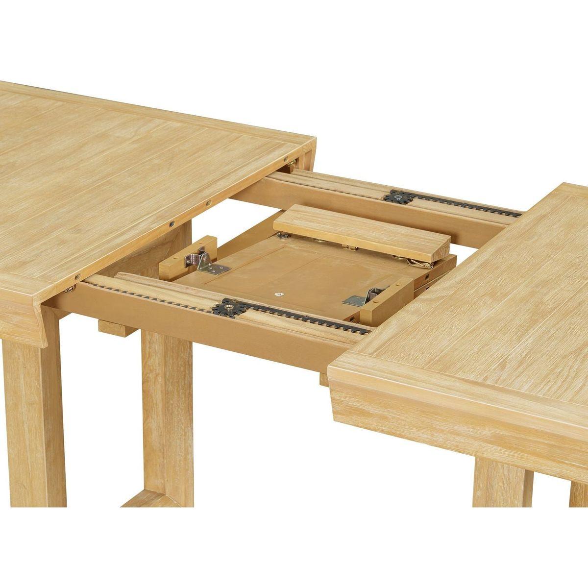 Crafted from high-quality rubber wood, this 7-piece dining set features a stylish distressed wire-brushed white finish, adding a rustic yet elegant charm to your dining area. The extendable table includes a 12-inch butterfly leaf, ideal for accommodating extra guests.