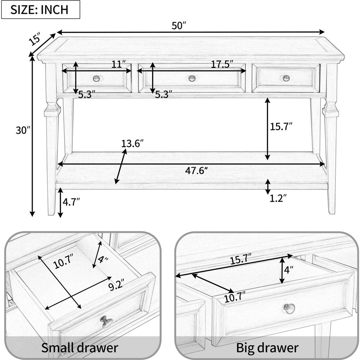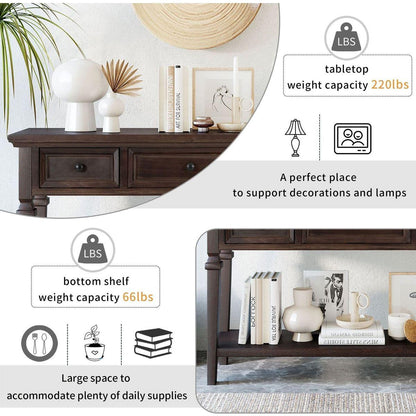 Classic Retro Style Console Table with Three Top Drawers and Open Style Bottom Shelf, Easy Assembly (Espresso)