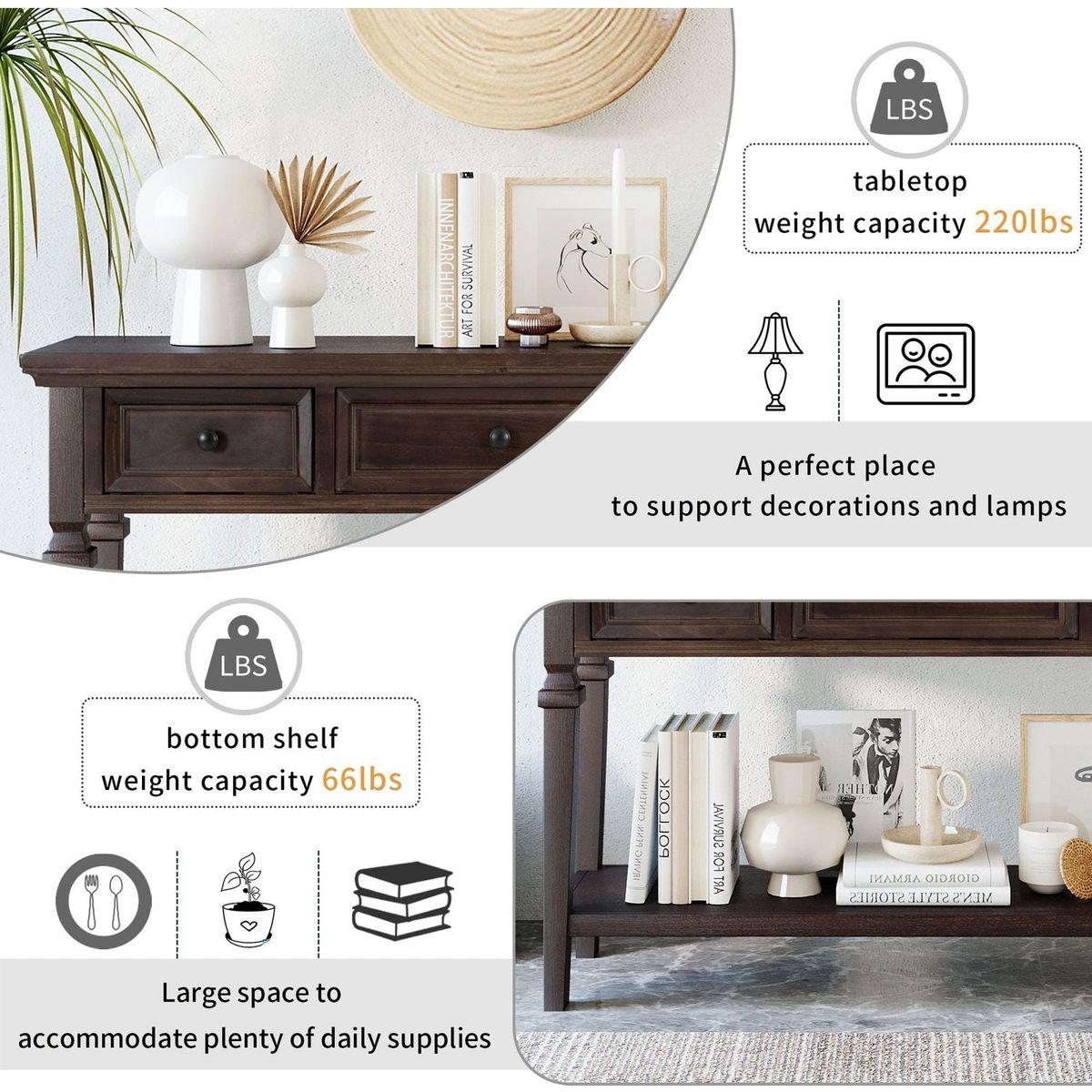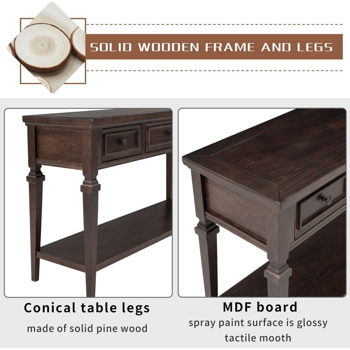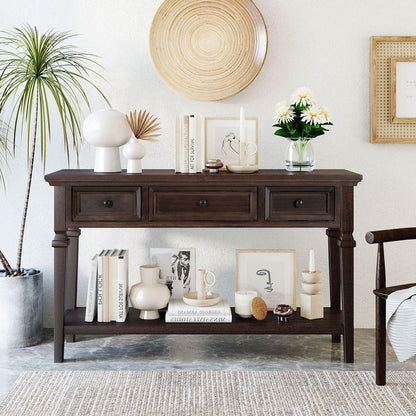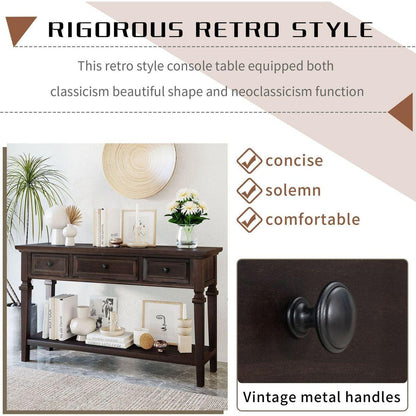 TREXM Classic Retro Style Console Table with Three Top Drawers and Open Style Bottom Shelf, Easy Assembly (Espresso)