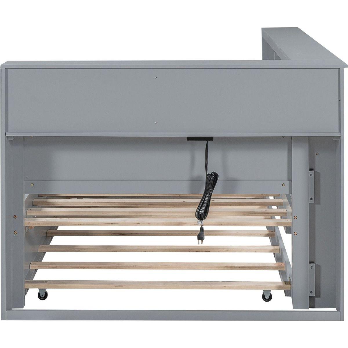 Wooden Twin Size DayBed with Twin Size Trundle, DayBed with Storage Shelf and USB Charging Ports,Grey
