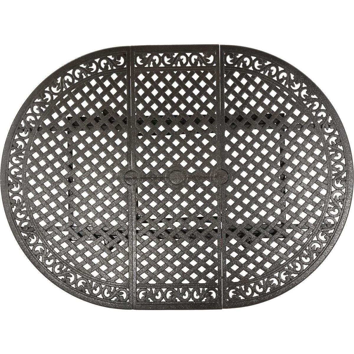 This expandable aluminum dining table is a stunning addition to any outdoor living space. Its classic design and sturdy construction make it perfect for both intimate gatherings and larger events. The intricate latticework details and removable leaf add a touch of elegance, while the scrollwork border ensures quick drying after rain. With ample space for up to six, this table is ideal for meals, drinks, or serving as a buffet. Its versatile design complements any patio decor, making it a must-have for outdoor enthusiasts.