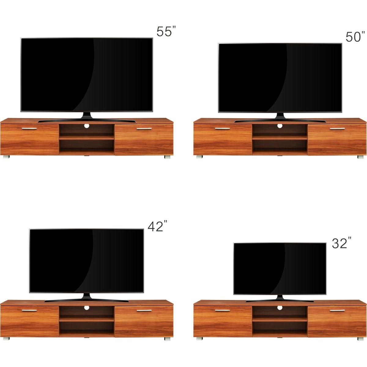 - MID-CENTURY TV STAND: This TV stand is designed with dimension of 63Lx13.8Wx17.7H in, making it recommended for TVs up to 70. The TV cabinet is made of classic appearance and solid PB composite board. This TV console table will be a perfect spot to hold a TV in your living room.