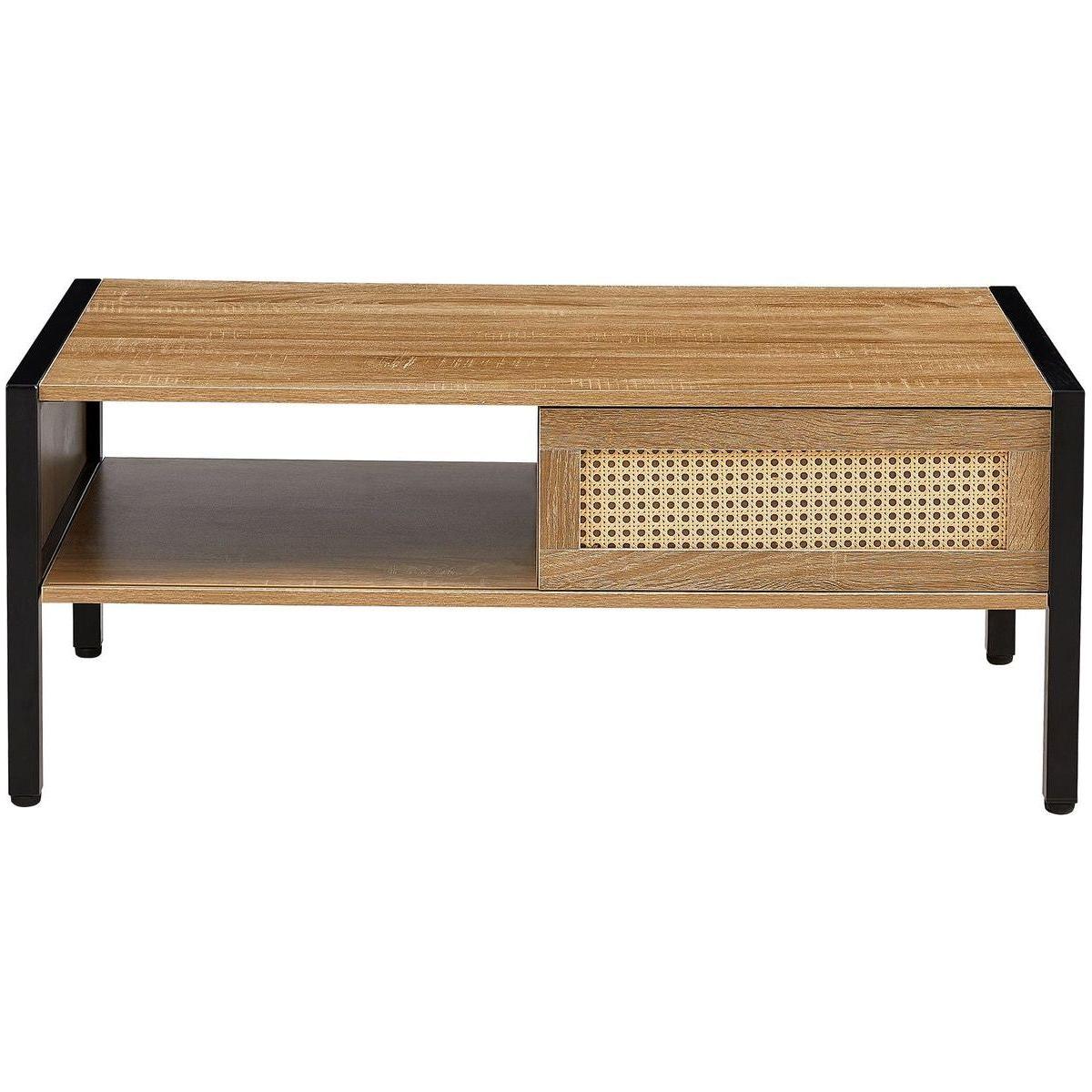 40.16" Rattan Coffee table, sliding door for storage, metal legs, Modern table for living room, natural