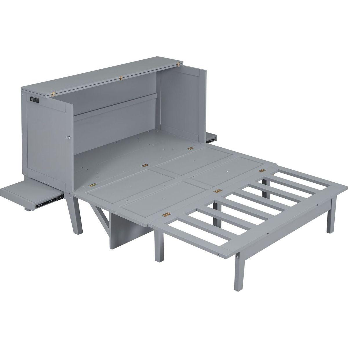 Queen Size Murphy Bed with USB Port and removable Shelves on Each Side,Gray