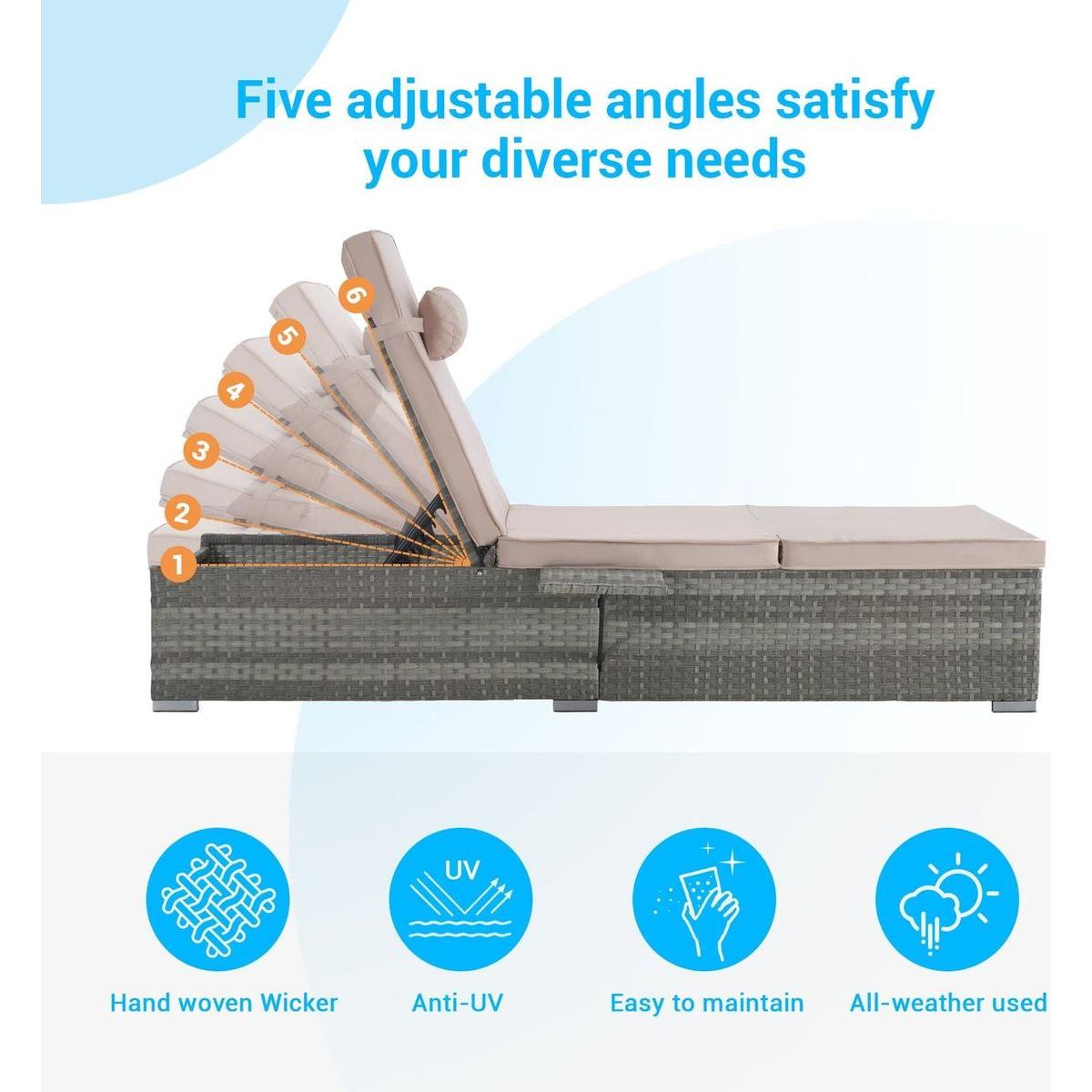 Adjustable backrest: This rattan day bed can be changed to six different positions for an angle which suits you – whether fully relaxing or reading a book.