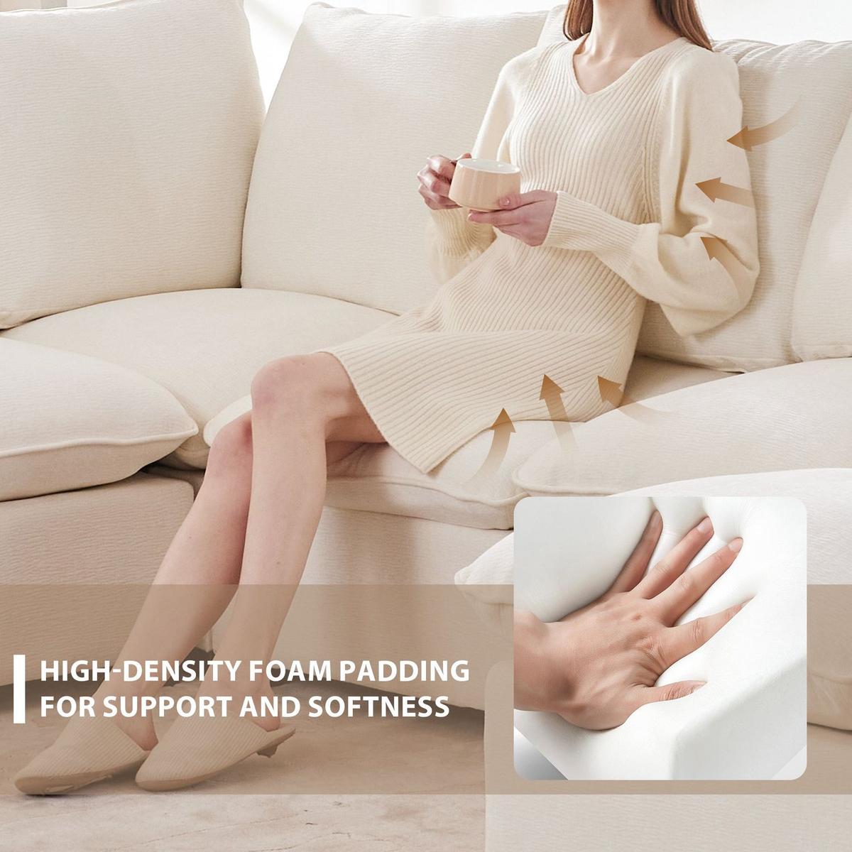 - High-Quality Sofa: This modular sofa features modern premium chenille and a sturdy solid wood frame; high-density foam and oversized cushions provide you with upgraded comfort, whether you're sitting or lying down to relax.