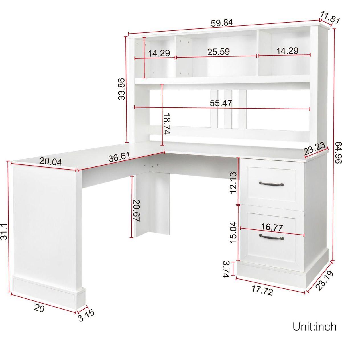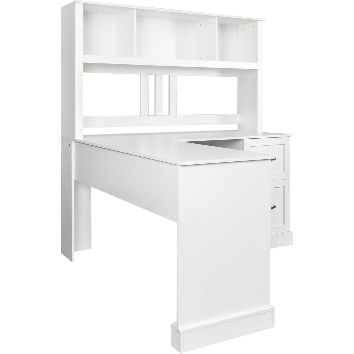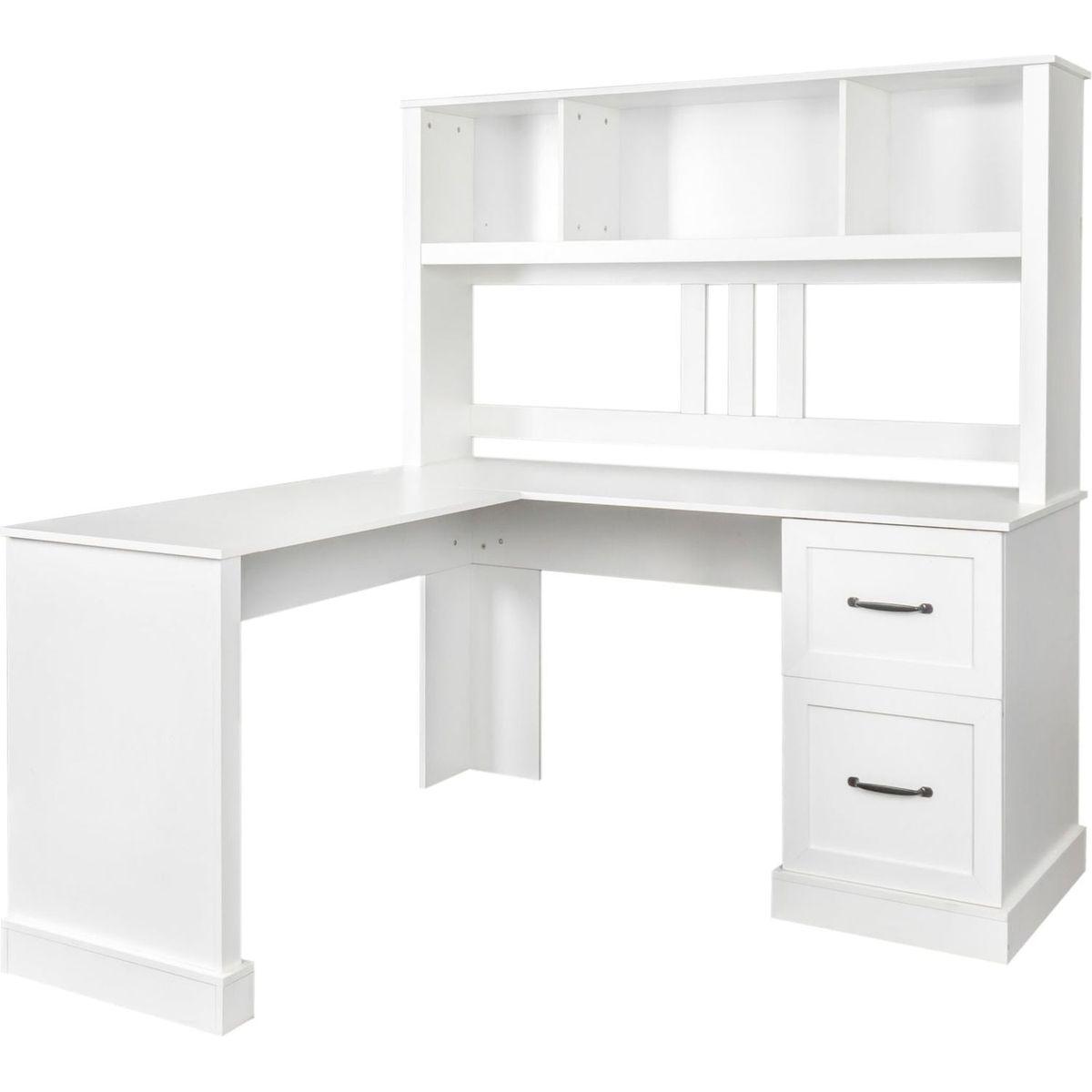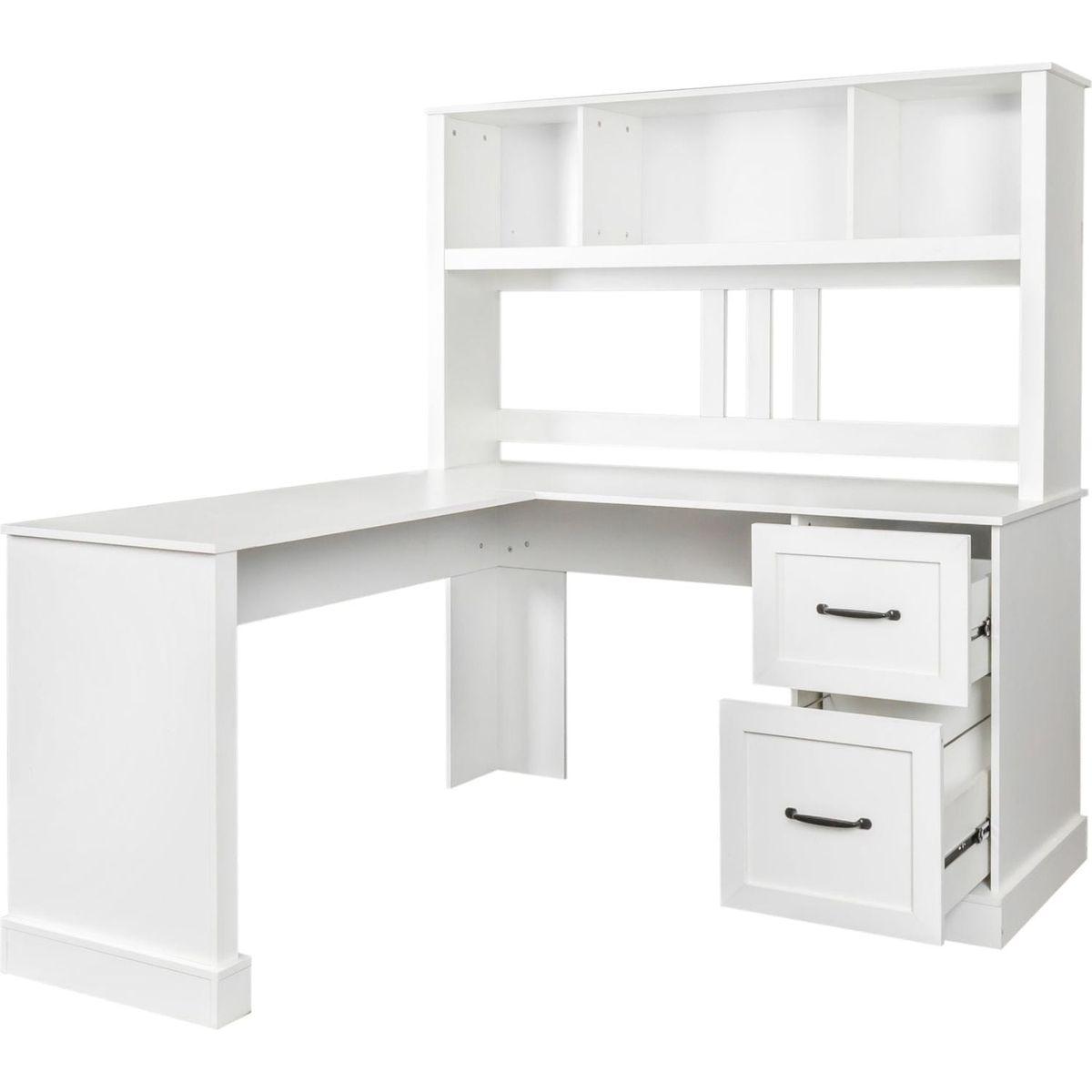 Home Office Computer Desk with Hutch, Antiqued White finish