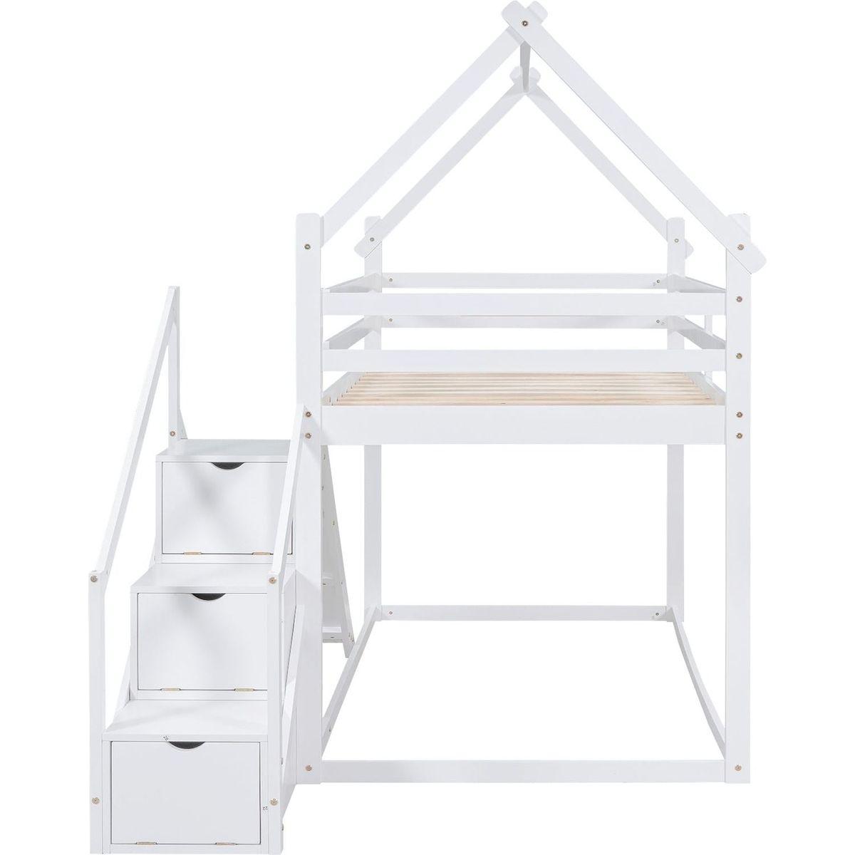 - [Storage Space] The wood house bed with storage staircase offer storage space for clothes and toys, Maximize space and help to develop your child’s habit of storage,It’s a perfect space-saving solution to you.