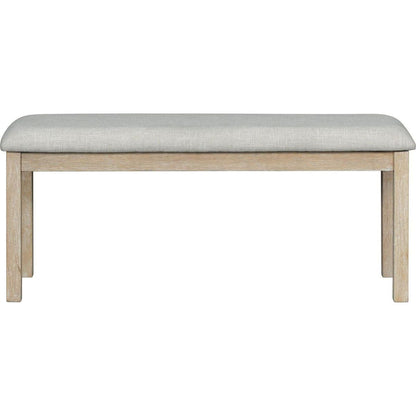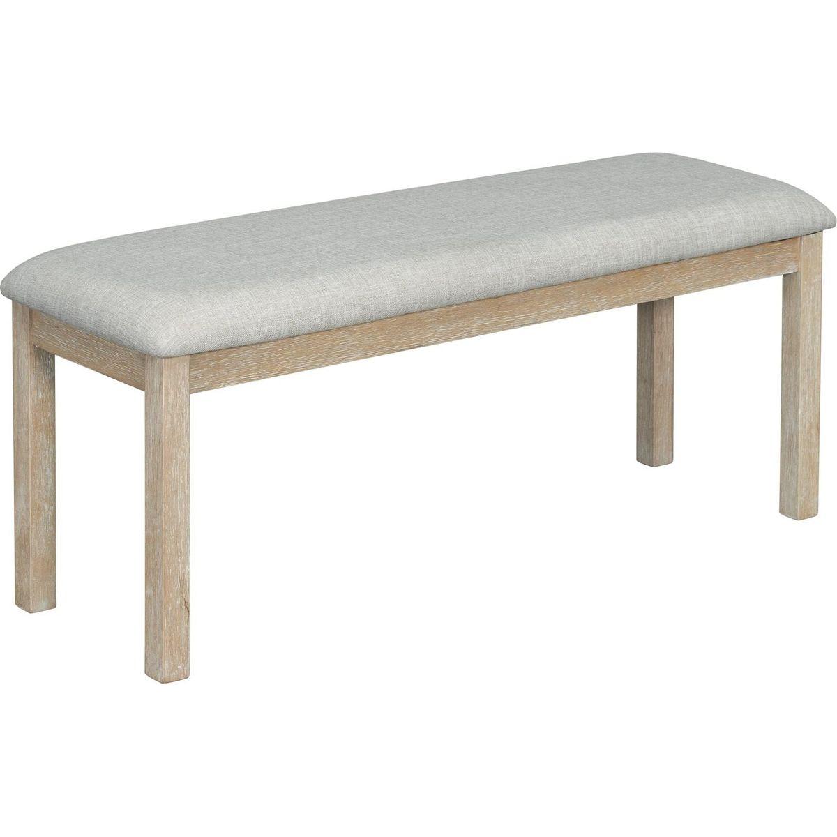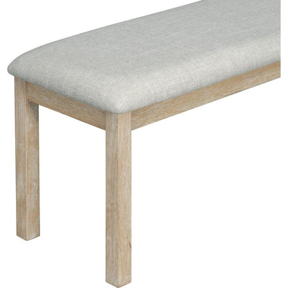 The tabletop of this dining table set adopts MDF board and solid wood veneer, and the legs of the table is made of rubber wood. The frame of four chairs and the bench is manufactured of rubber wood as well to ensure adequate load-bearing capacity. In addition, the 65mm cushion seats of four chairs and the bench can offer comfort using experience. 3.Two Color Options