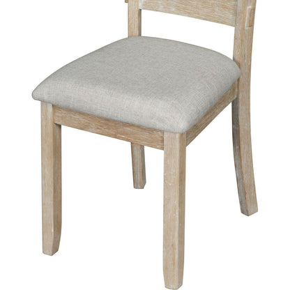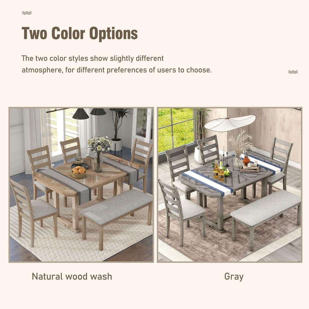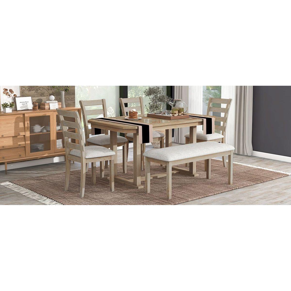 6-Piece Rubber Wood Dining Table Set with Beautiful Wood Grain Pattern Tabletop Solid Wood Veneer and Soft Cushion (Natural Wood Wash)
