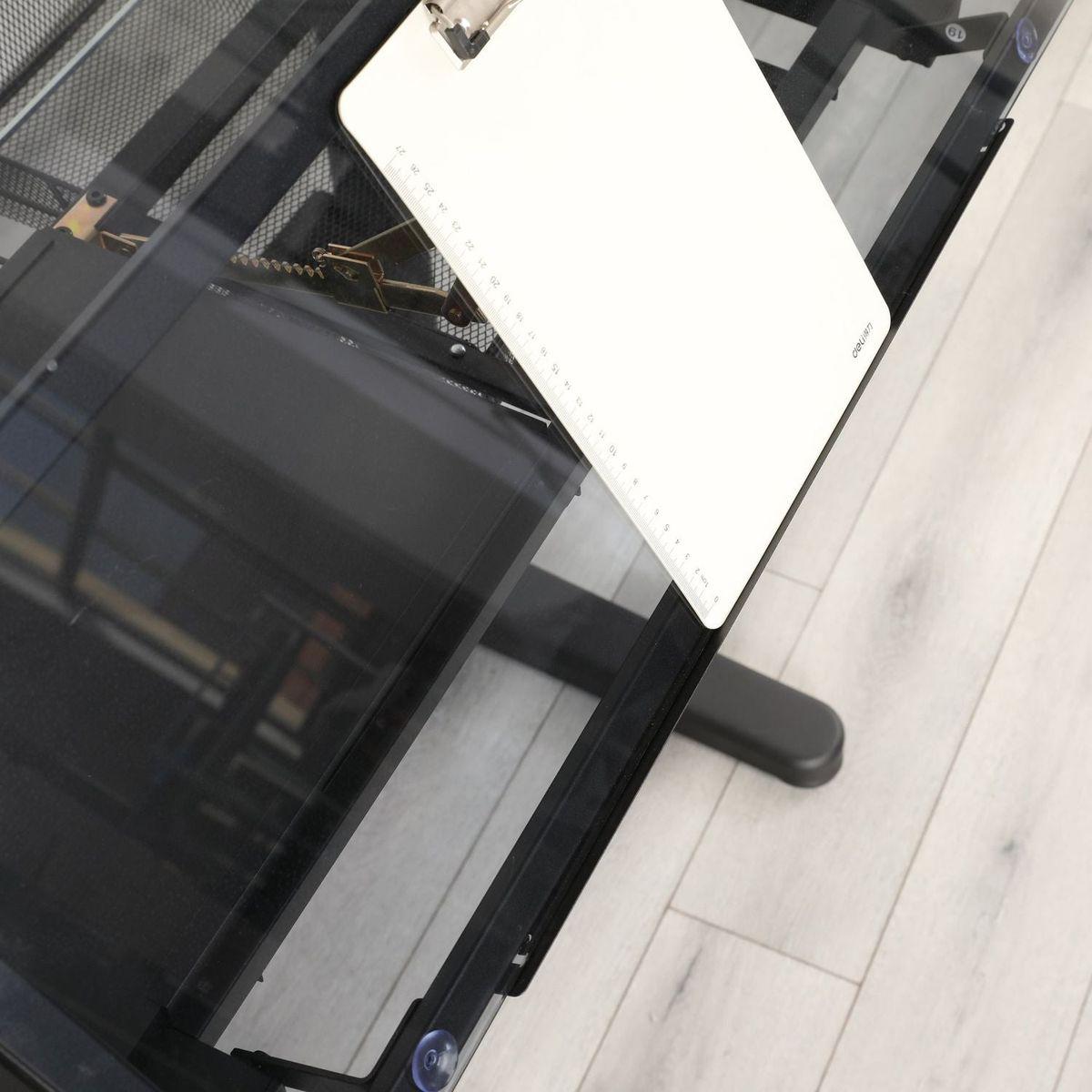 - Tabletop can be tilted: The desktop is made of 5mm thick tempered glass transparent material, which has good light transmittance. the desktop can be tilted from 0 to 75°.