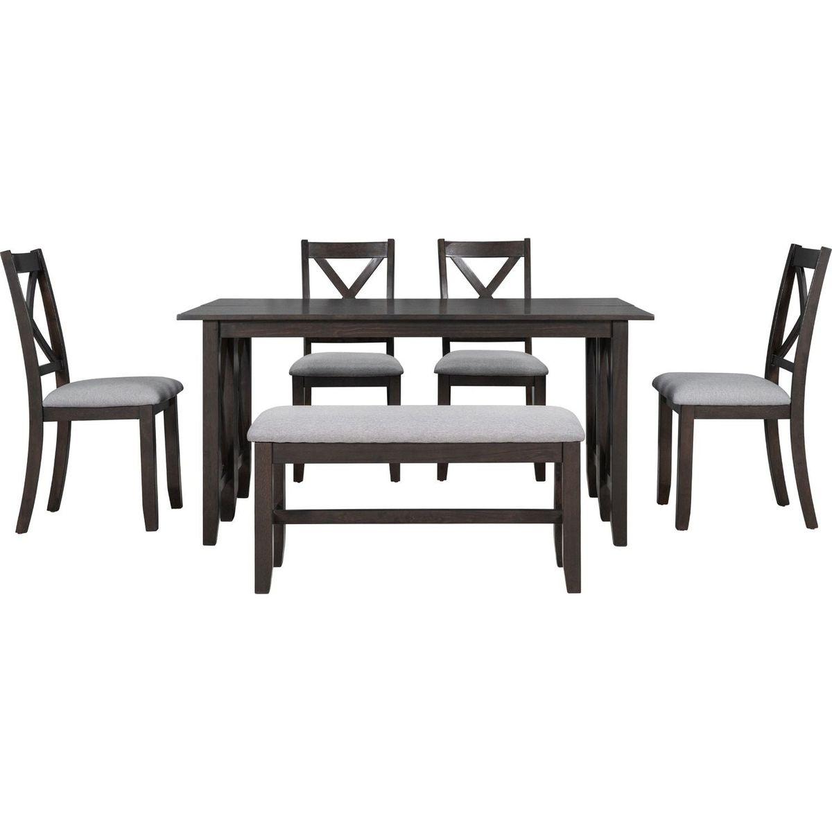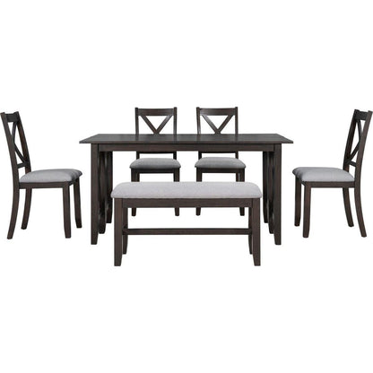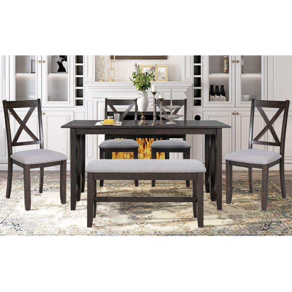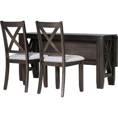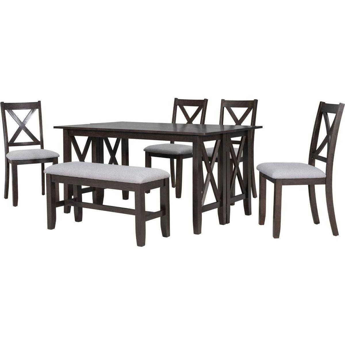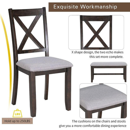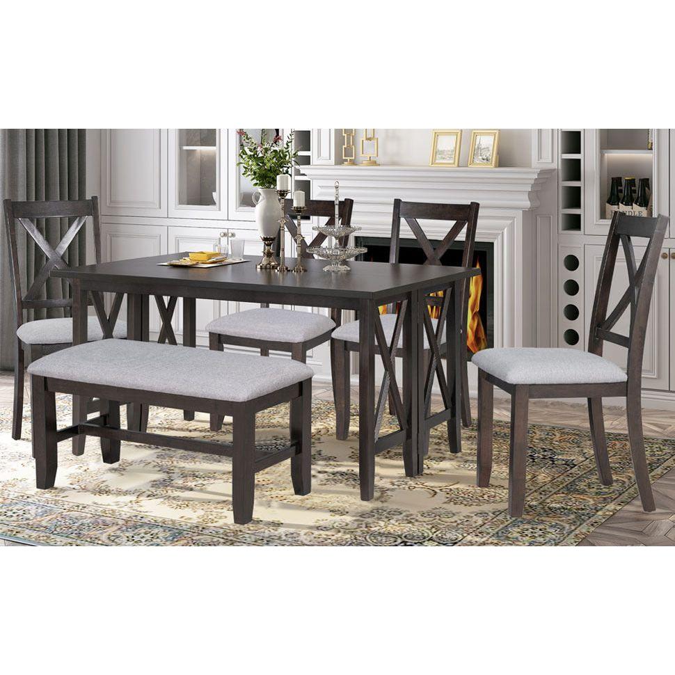 6-Piece Family Dining Room Set Solid Wood Space Saving Foldable Table and 4 Chairs with Bench for Dining Room (Espresso)