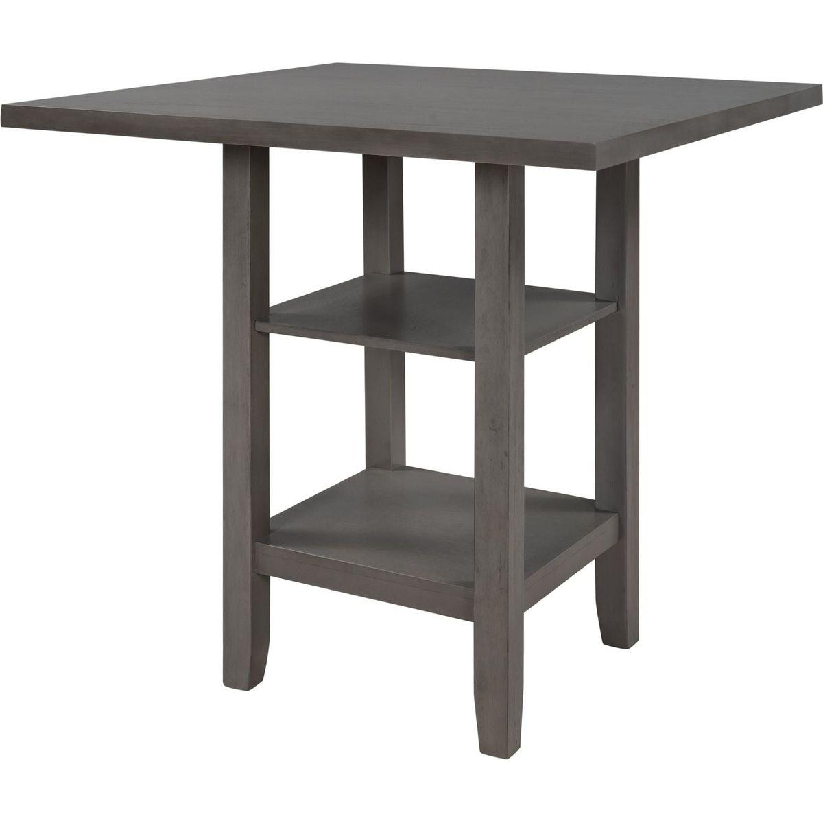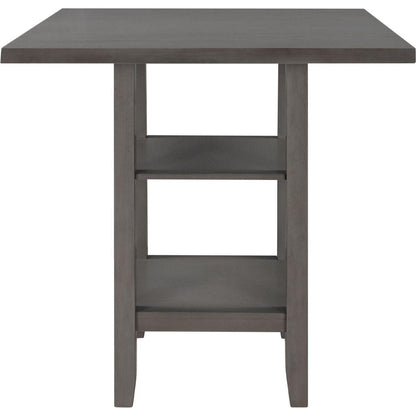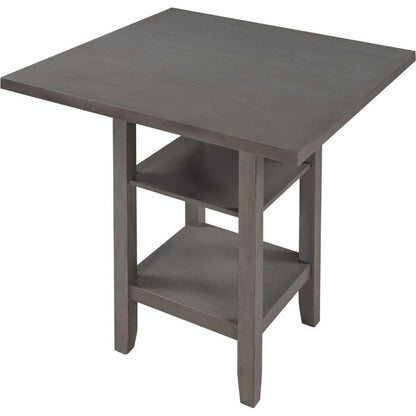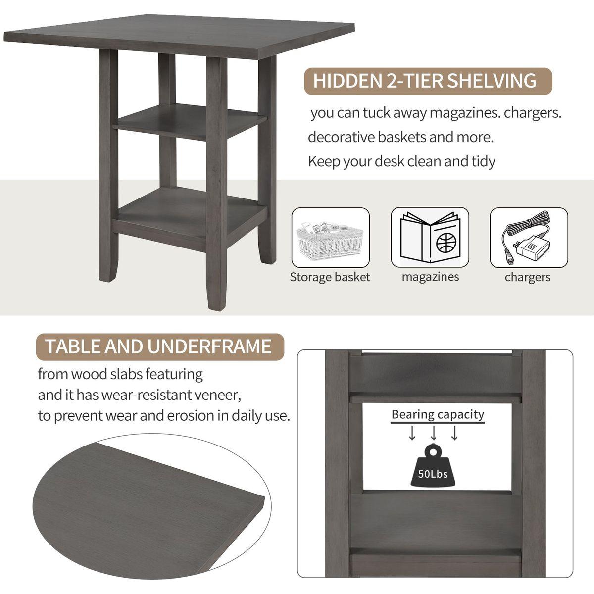 5-Piece Wooden Counter Height Dining Set with Padded Chairs and Storage Shelving (Gray)