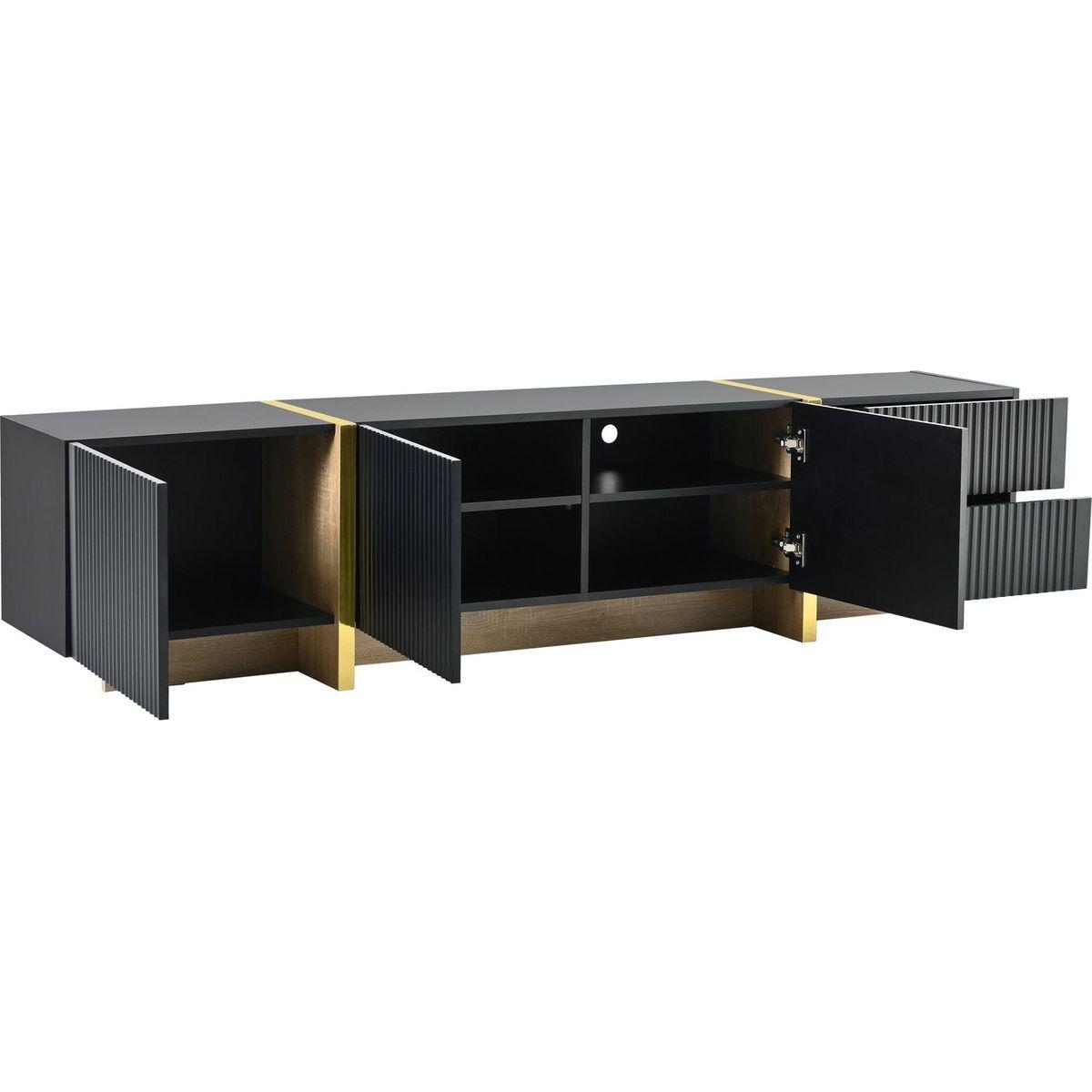 Luxury Fluted TV Stand for TVs Up to 80", Modern Entertainment Center with Storage Cabinets & Drawers, Smooth Media Console with Golden Wood Grain Legs for Living Room, Black