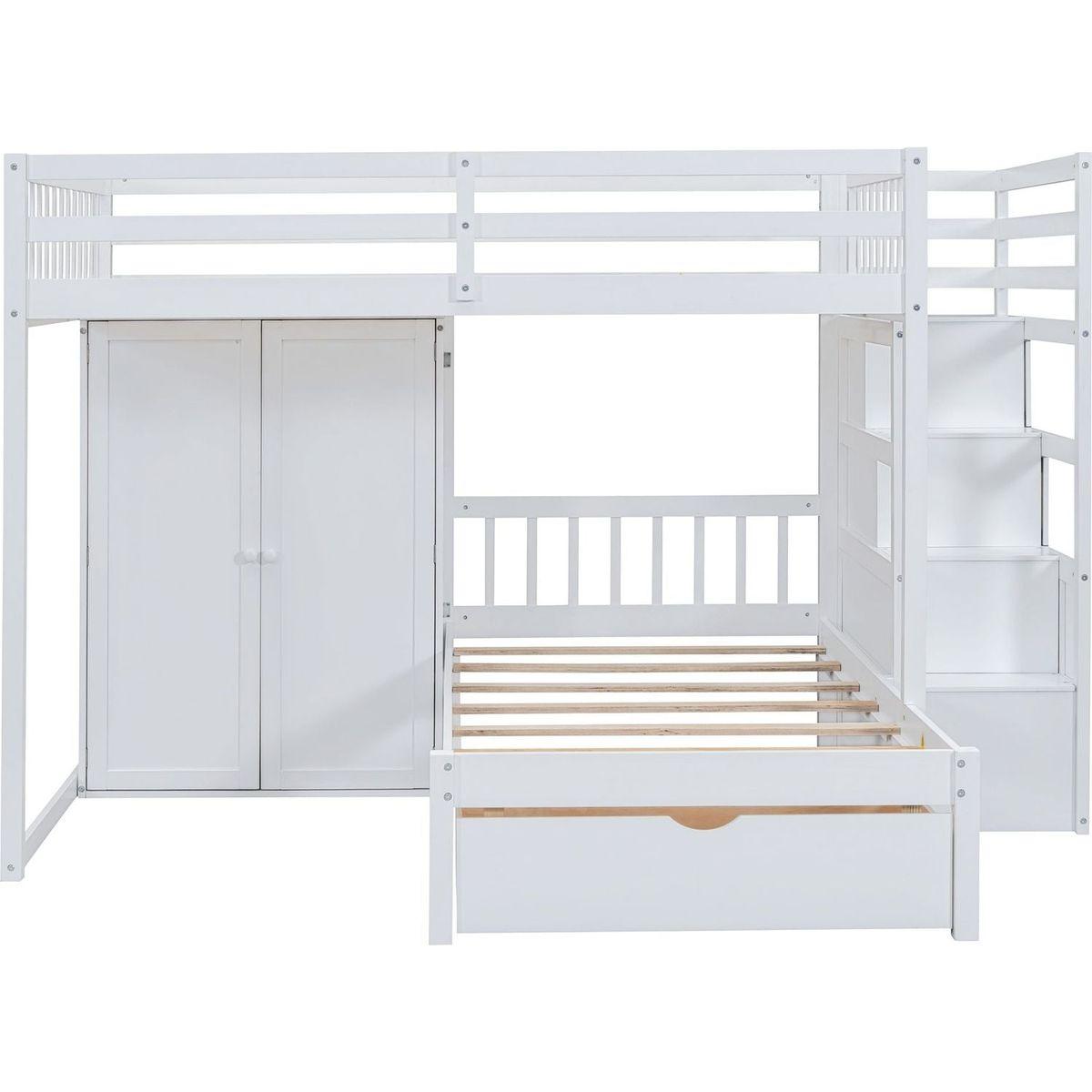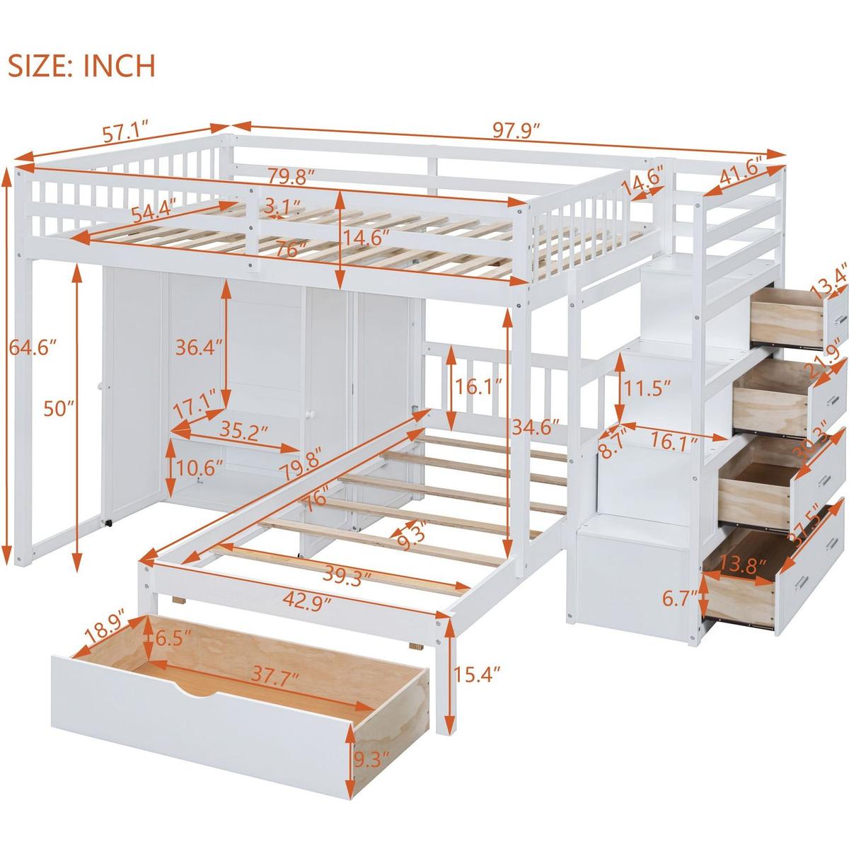 - [Storage-Savvy Design] Say goodbye to clutter with built-in storage solutions! The side staircase features four convenient drawers, perfect for stashing away clothes, toys, or bedding. With an additional storage wardrobe included, you can keep linens, clothing, and other items neatly organized and within arm's reach.