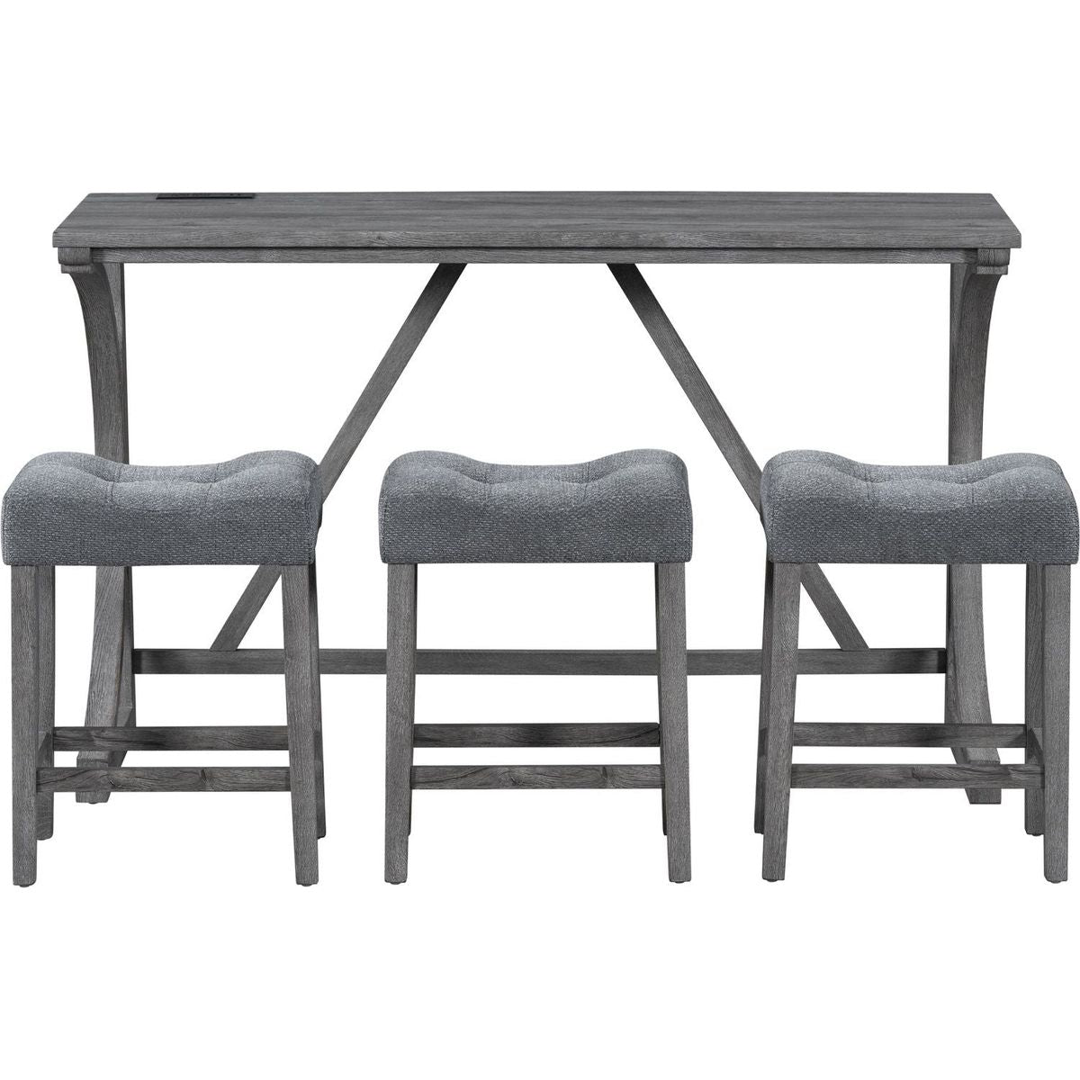 Bar Table Set with Power Outlet, Bar Table and Chairs Set, 4 Piece Dining Table Set, Industrial Breakfast Table Set, for Living Room, Dining Room, Game Room