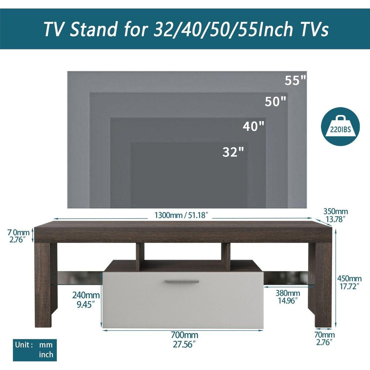 - FUSING DESIGN WITH FUNCTION: Featuring a modern and simple design, this TV Stand with Led fits with different room theme, and the LED lights could create different atmosphere for your room