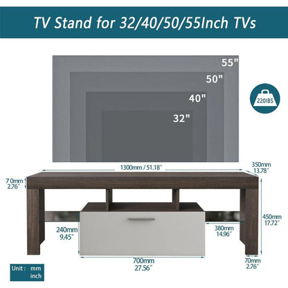 - PERFECT SIZE: 51(L)x 14(W)x 18(H)inch, this white TV console fit up to 55 inch TV. Spacious tabletop along with 1 large storage drawer satisfies all your display and storage needs in the bedroom or living room