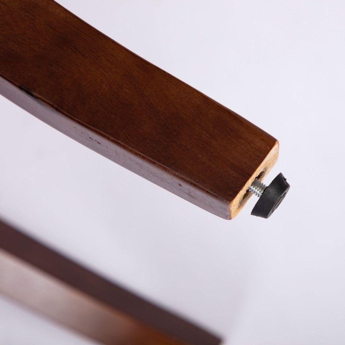 The solid wood legs in walnut color are equipped with adjustable balance studs.
