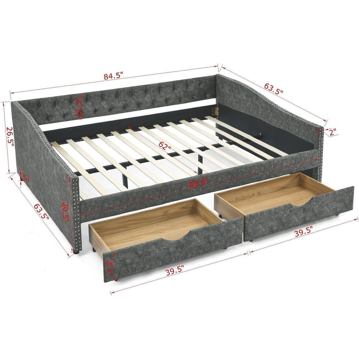 Queen Size Daybed with Drawers Upholstered Tufted Sofa Bed,,with Button on Back and Copper Nail on Waved Shape Arms(84.5"x63.5"x26.5")