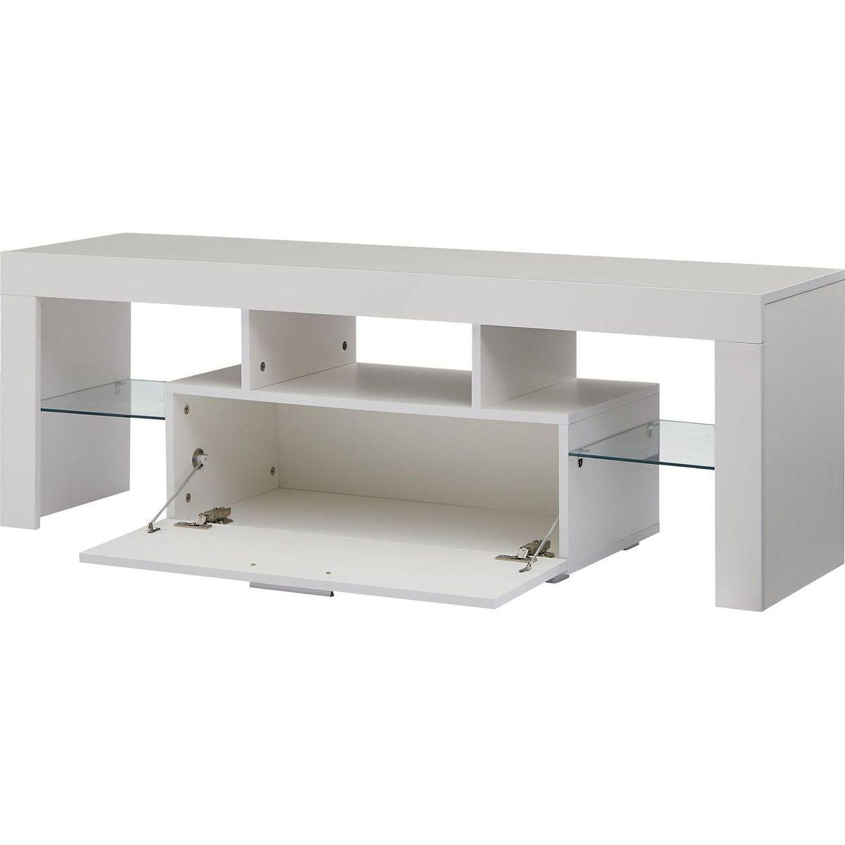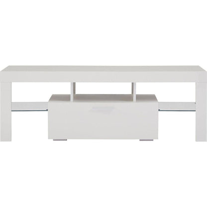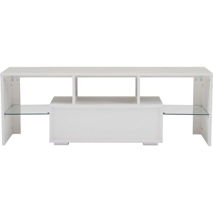 White modern TV Stand with LED Lights, high glossy front TV Cabinet, can be assembled in Lounge Room, Living Room or Bedroom, color:WHITE