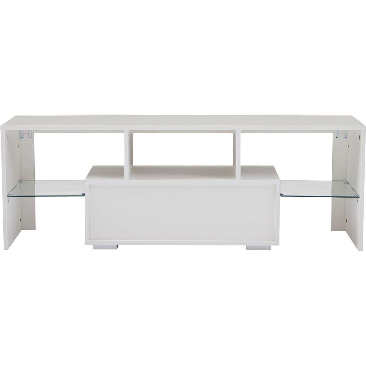 - FUSING DESIGN WITH FUNCTION: Featuring a modern and simple design, this TV Stand with Led fits with different room theme, and the LED lights could create different atmosphere for your room
