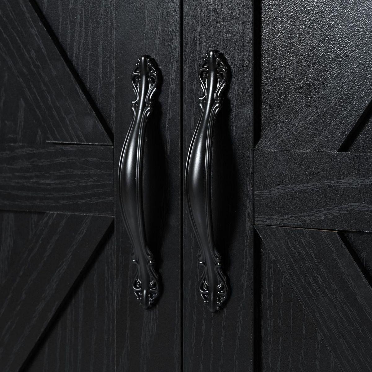 The two barn doors all feature 2-tier shelf racks, providing easy access to soy sauce, barbecue sauce, and other condiments, and pine stick can keep things from falling.