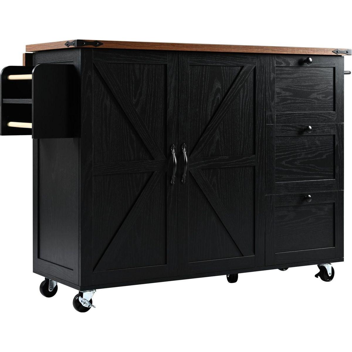 54.5" Farmhouse Kitchen Island with Power Outlet, Kitchen Storage Island with Internal Storage Rack, Drop Leaf, Spice Rack, Rolling Kitchen Cart on Wheels, for Home, Kitchen and Dining Room,Black