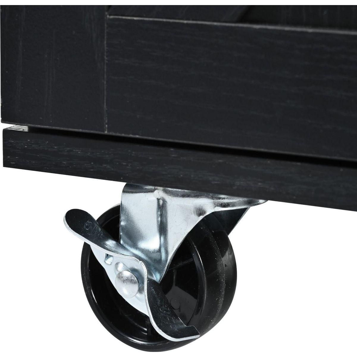This mobile kitchen island on wheels is equipped with 5 universal wheels, 2 of which are lockable. The central placement of one wheel at the base ensures enhanced overall stability during movement.