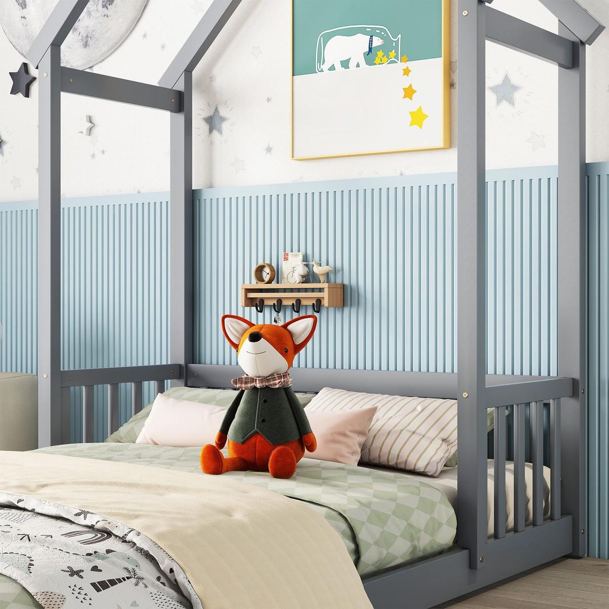 - #1 [House-Style Roof-framed Headboard]The house-style headboard features the roof-framed structure and headboard fence to give you a warm and cozy feeling. This intelligent design adds to a jolly good idea of the imagination and exploring.