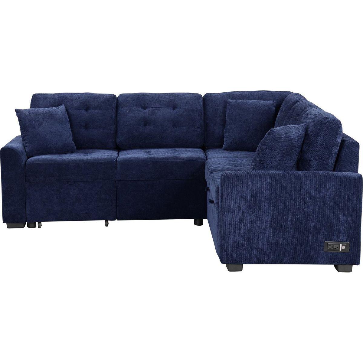 82.6" L-shape Sofa Bed Pull-out Sleeper Sofa with Wheels, USB Ports, Power Sockets for Living Room, Navy Blue