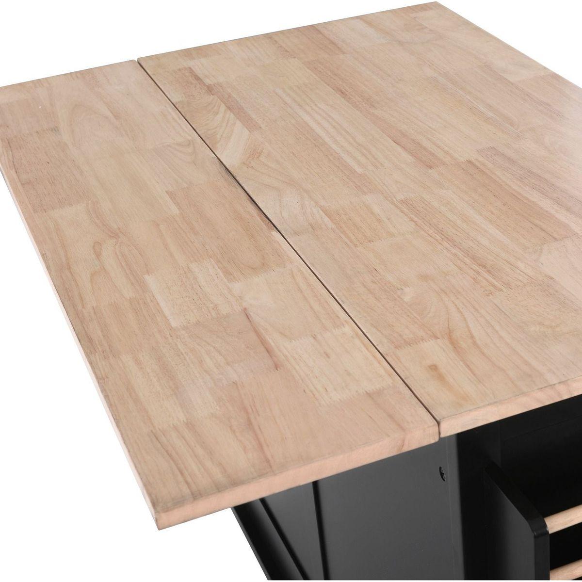 K&K Kitchen Cart with Rubber wood Drop-Leaf Countertop, Concealed sliding barn door adjustable height,Kitchen Island on 4 Wheels with Storage Cabinet and 2 Drawers for Dinning Room, L52.2xW30.5xH36.6 inch, Black