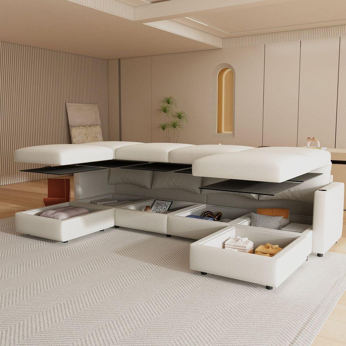 Modern Large Sectional Sofa, U-Shape Modular Sectional Couch with Storage Function,123" Sofa Bed with Ottoman,6 Seat Sectionals Chaise for Living Room,Chenille