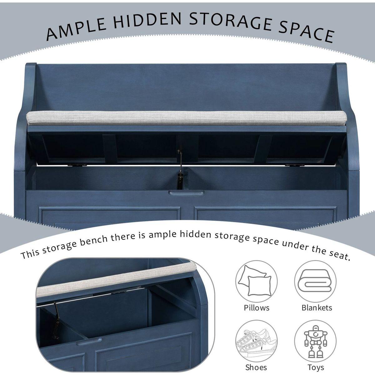 Rustic Style Solid wood Entryway Multifunctional Storage Bench with Safety Hinge (Antique Navy+ Beige)