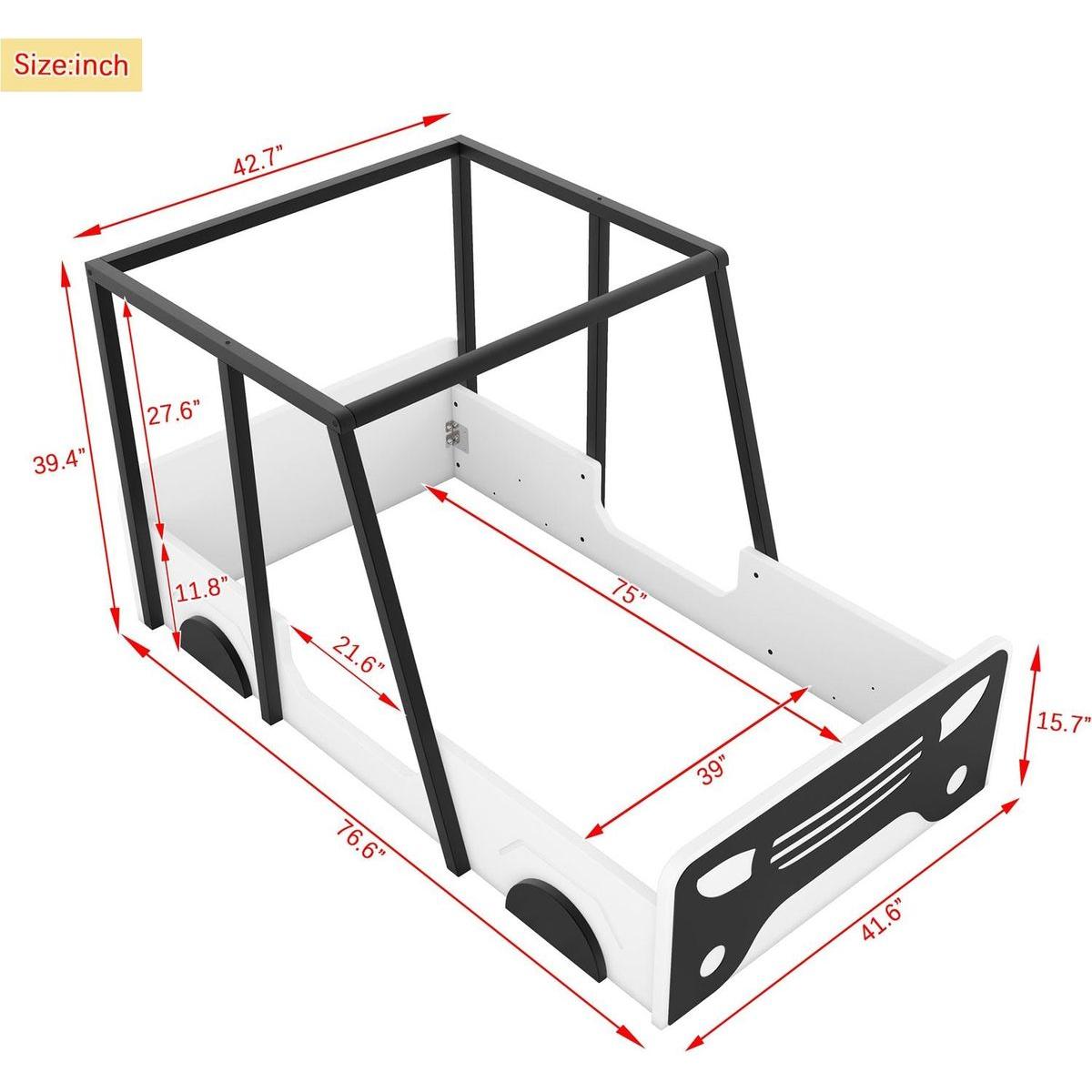 - #1 [Novel and Fun Play Design] The twin bed features fun play design, which not only makes the bed attractive, but also functions as an extra safeguard for users. Its dynamic design, complete with the vivid wheels, transforms nightly slumbers into an exhilarating journey towards adventure-filled dreamscapes.