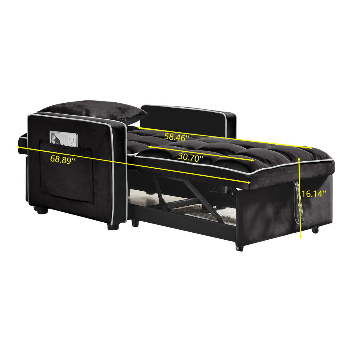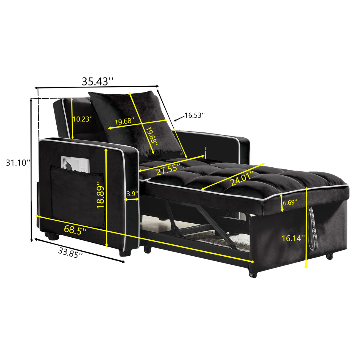 Three-in-one sofa bed chair folding sofa bed adjustable back into a sofa recliner single bed adult modern chair bed berth black